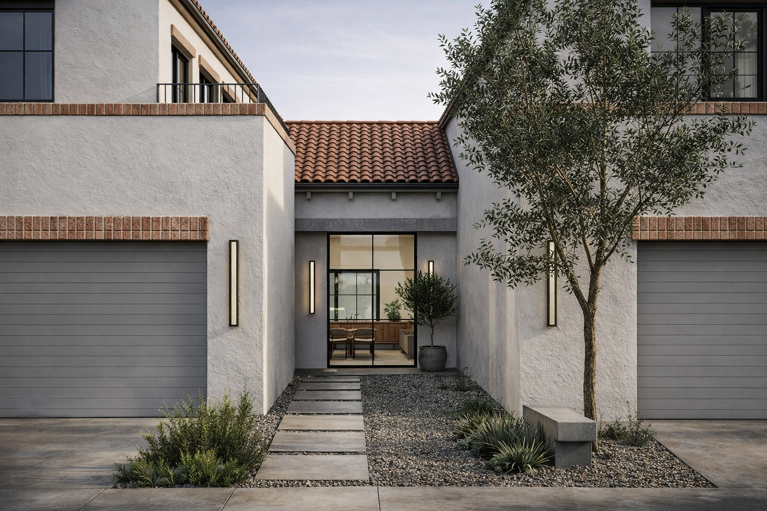 Olive View combines warm architecture, landscaped arrival spaces, and practical family living.