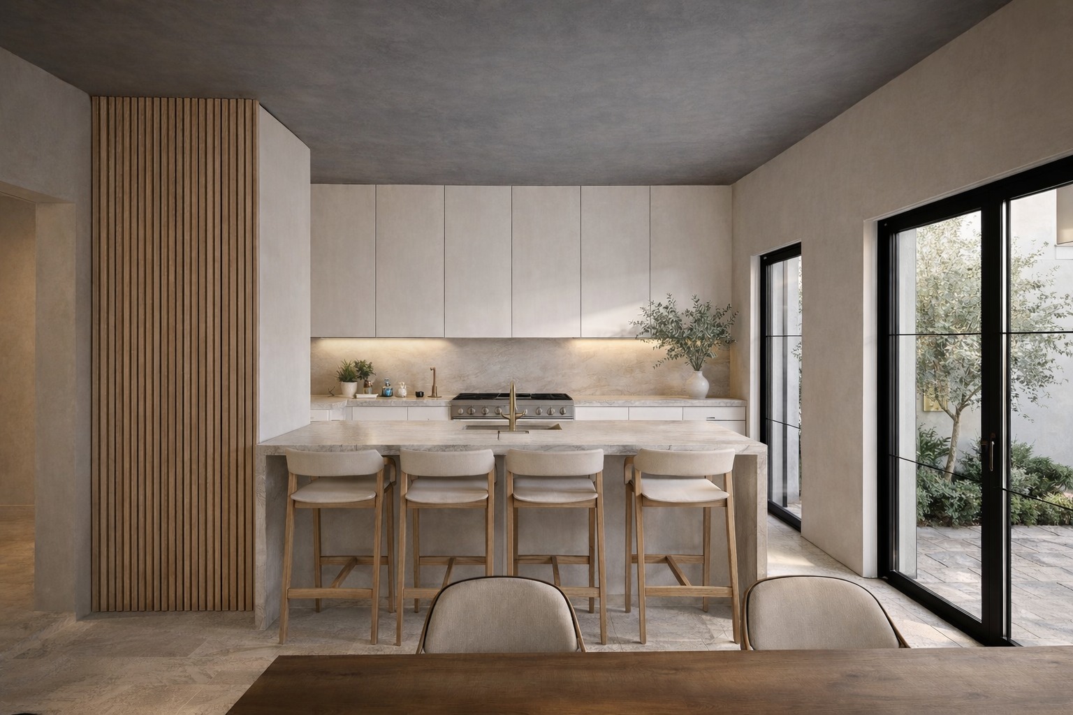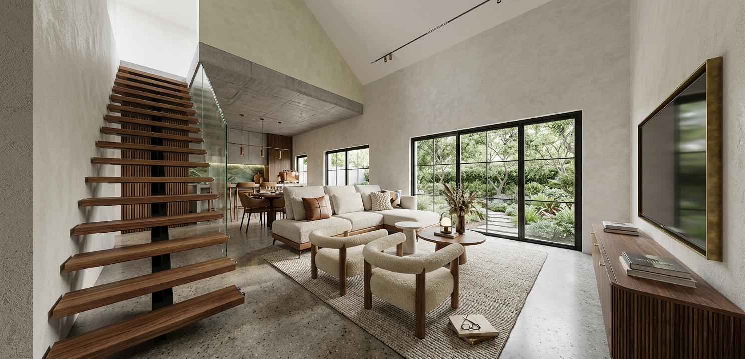 Warm materials, black steel detailing, and a restrained Mediterranean paletteDevelopment Story